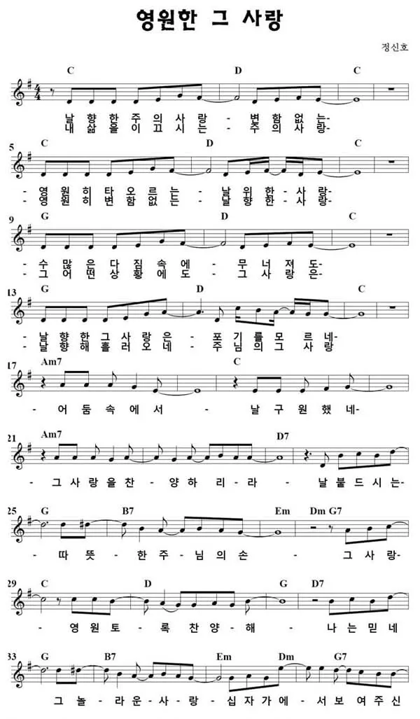 영원한 그 사랑 악보, 가사 다운로드